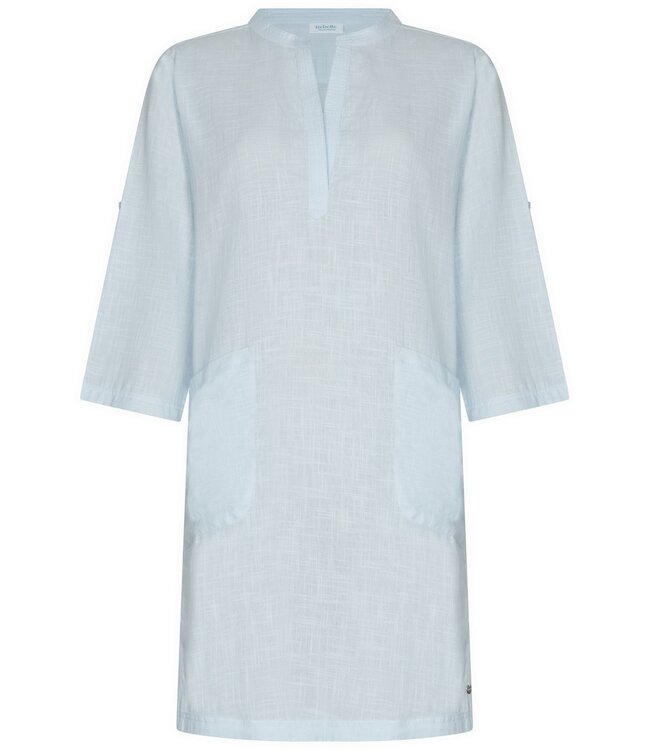 'chic fabulous beach' pale sky blue tunic style 3/4 sleeve 100% cotton woven beach tunic dress with optional turn-up sleeves and two front handy pockets Complete your beach look with a swimsuit of your choice Read more.