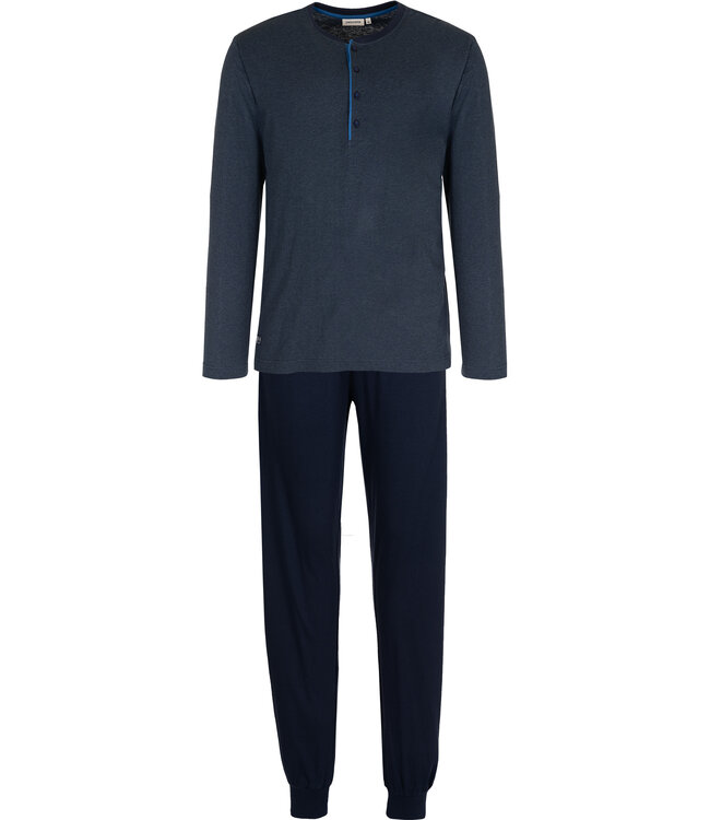 'comfort men' marine blue & royal blue men's 100% single jersey cotton, long sleeve pyjama set with 4 buttons, rib cuffs and long comfortable marine blue cuffed pants with an elasticated waist Go for comfort & look great