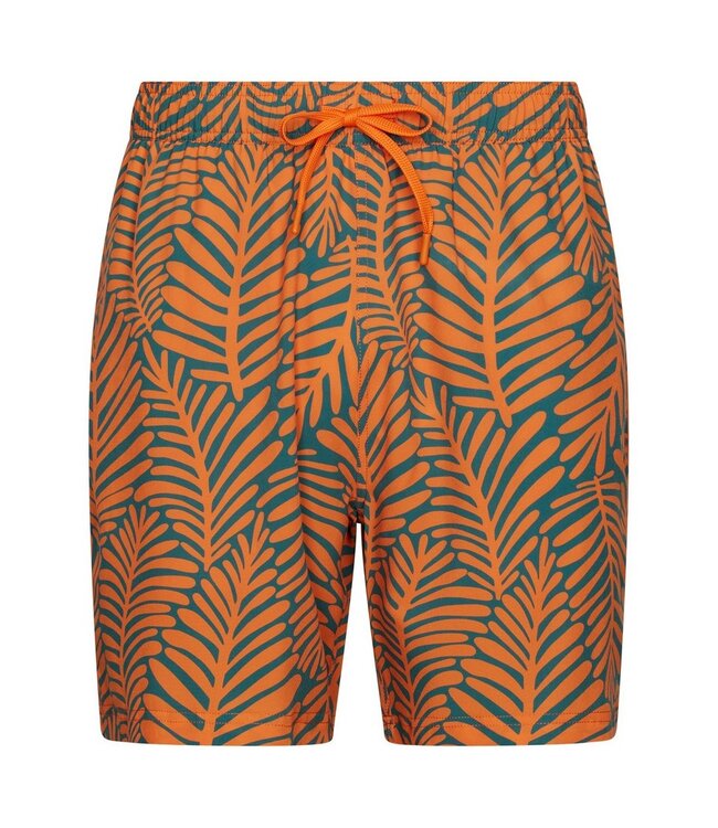 men's orange swim shorts with elasticated tie-waist groovy palm