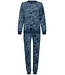 Pastunette Premium 'ornamental flower' navy blue & pearly white ladies soft & warm, luxury lounge style, receyclcled polar fleece, home lounge pyjama set with cuffs an all over fashionable' ornamental flower' pattern and long matching cuffed pants (100%