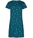 'tropical holiday' groenblauw dames nachthemd met korte mouwen van 100% biologisch katoen met twee handige zakken in een schattige allover print van kleine maki aapjes