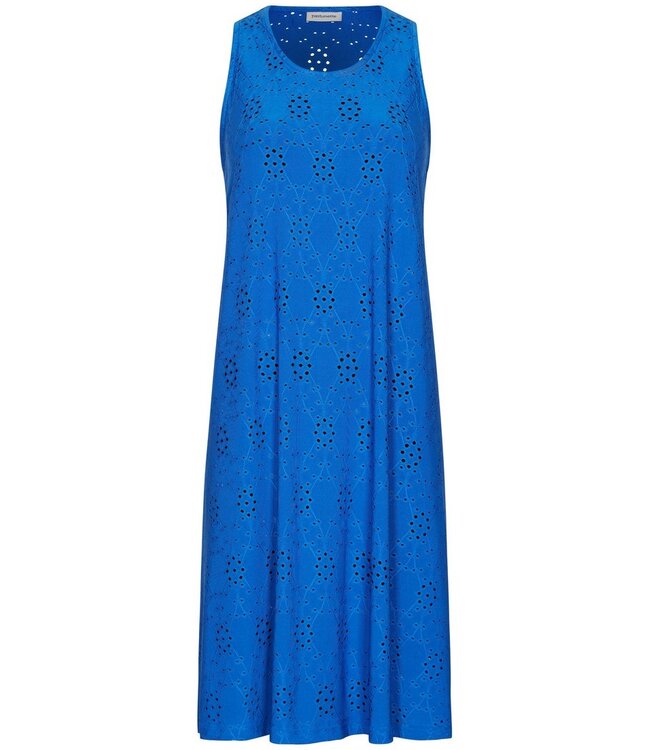 Polyester met elastaan is een lichte en comfortabele kwaliteit voor een strandjurkje. De stof is sneldrogend, vormvast en kreukarm, terwijl elastaan zorgt voor lichte stretch en bewegingsvrijheid, ideaal voor warme en zonnige dagen.