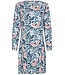 ‘Arty Leafs’ wit, pastelblauw, blushroze & marineblauw dames nachthemd met lange mouwen van biologisch katoen en elastaan met een wijdere ronde hals in een sierlijk all-over artistiek bladpatroon