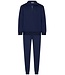 ‘Relax Modern’ marineblauw heren lounge-joggingpak van katoen-polyester French terry, comfortabel met kraag, halve rits en lange broek met boorden, elastische taille en twee zakken
