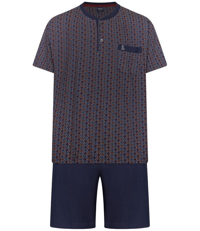Robson donkerblauwe, katoenen heren shortama met knopen triangle trivia