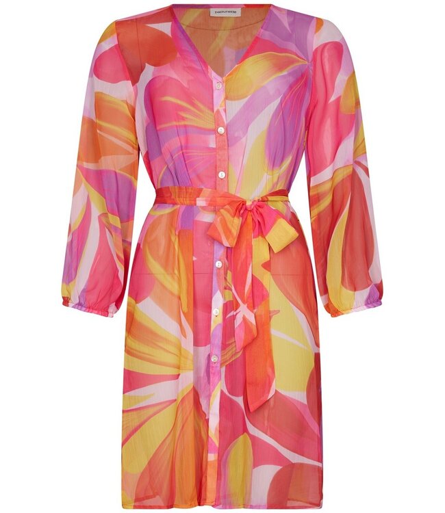 Geweven polyester is een lichte en praktische kwaliteit voor een strandjurkje. De stof is soepel, sneldrogend en kreukarm, waardoor het jurkje comfortabel draagt en ideaal is voor warme, zonnige dagen.