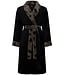 Warme, zwarte, coral-fleece overslag ochtendjas 'abstract art'